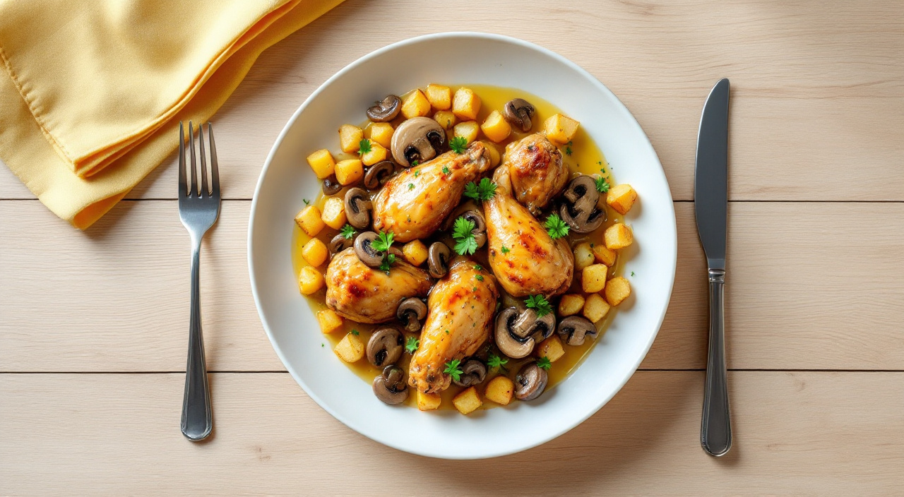 Alitas de pollo con champiñones con salsa de vino blanco