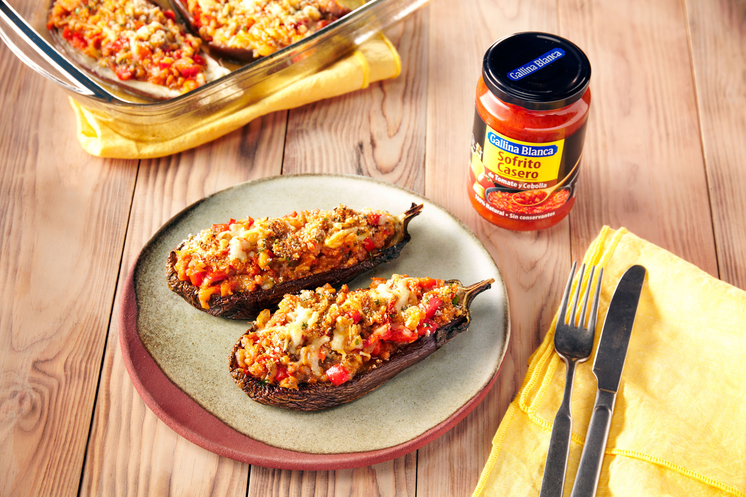Retira las berenjenas del horno y prepárate para el toque crocante especial. Aquí es donde aplicamos el Súper Truco Gallina Blanca (consejos para cocinar berenjenas rellenas con carne y verduras) que aportará un acabado crujiente y delicioso. Al finalizar, tus berenjenas rellenas de carne y verduras tendrán una presentación irresistible y un sabor que deleitará a todos. Este plato es una excelente manera de disfrutar de la versatilidad y los nutrientes de la berenjena en una preparación deliciosa y completa. ¡Anímate a probarlo y sorprender a tus comensales con esta receta única!