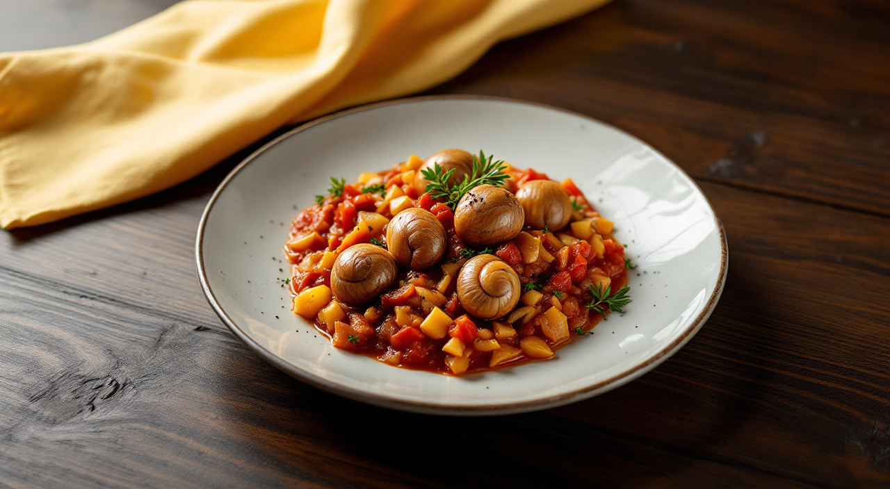 Pelar y cortar a trocitos muy pequeños la cebolla y pochar en un poco de aceite, cuando casi esté,añadir los caracoles y dejar al fuego hasta que se consuma el agua que sueltan