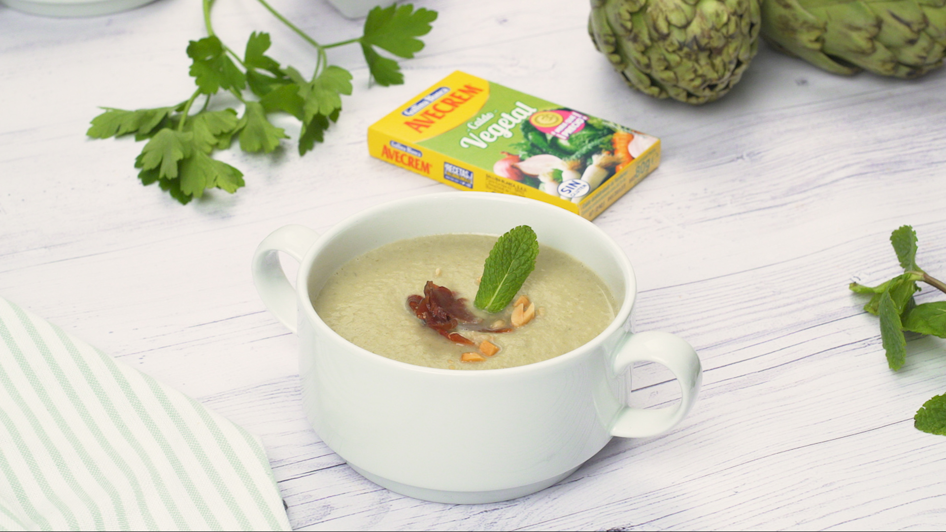Crema de alcachofas con jamón