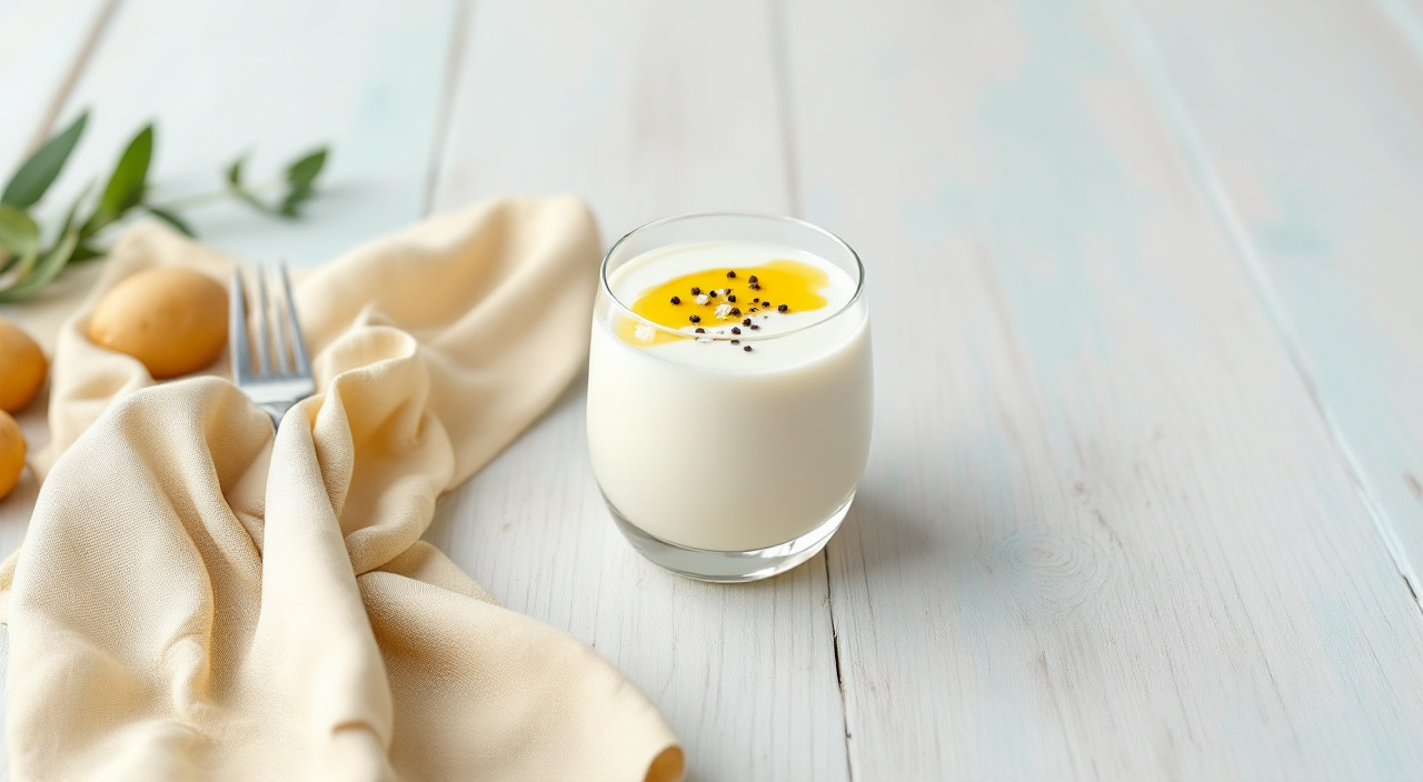 * Triturar las patatas en caliente y añadir el agua de su propia cocción, la nata y el aceite.
