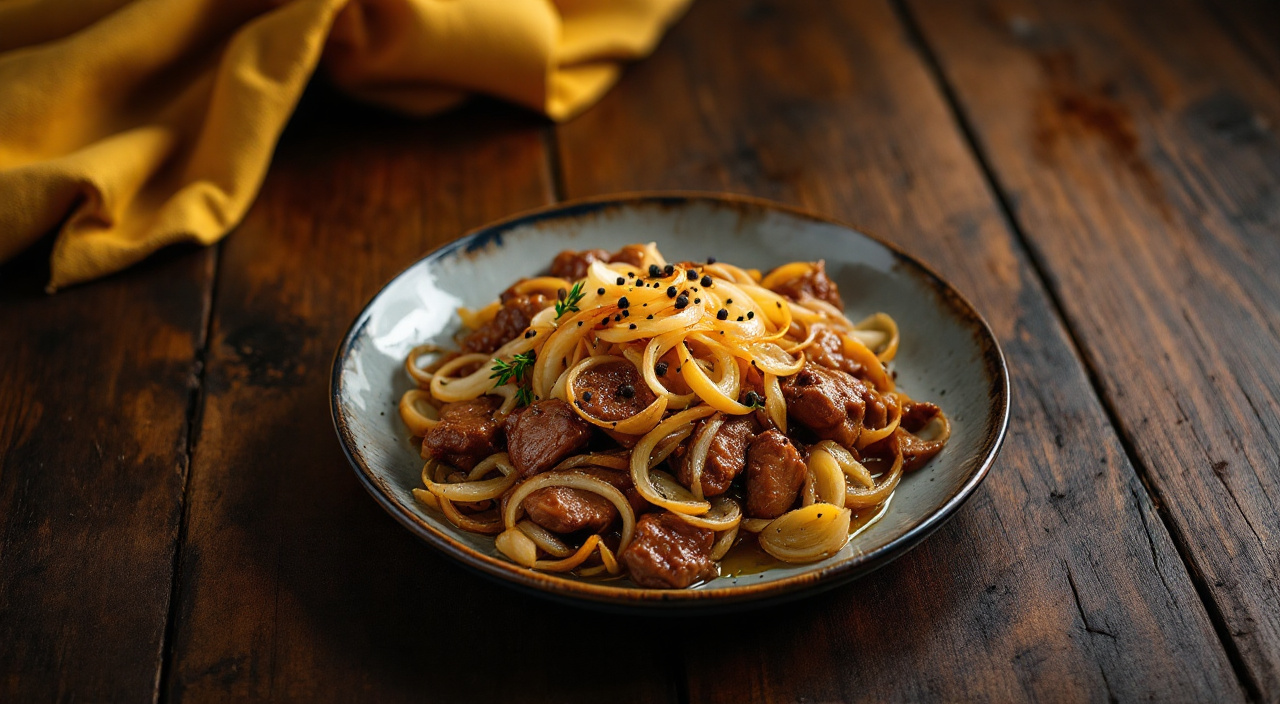 Pela y corta en juliana las cebollas y echa en la sartén con el aceite caliente hasta que esten doraditas y retira.