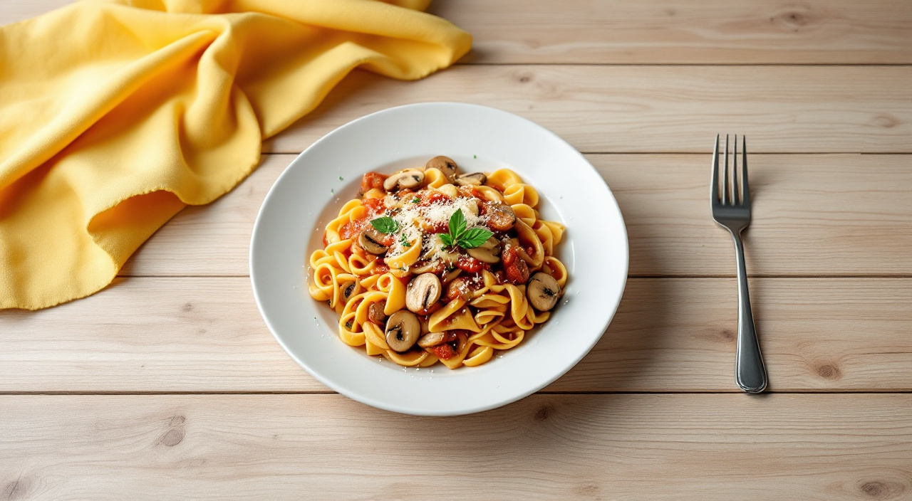 Pasta con salsa napolitana y setas