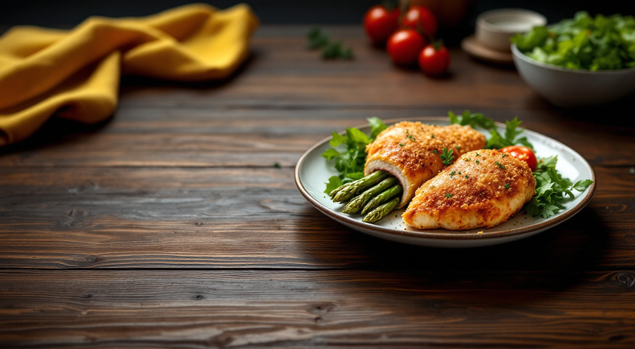 Pechugas de pollo rellenas de jamón y espárragos trigueros