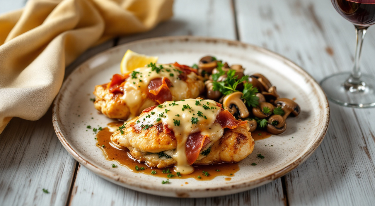 Pechugas rellenas en salsa de vino blanco