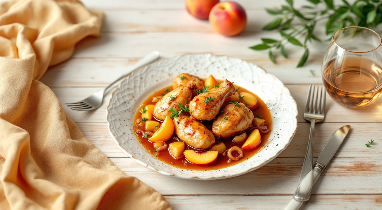 Pollo con melocotón