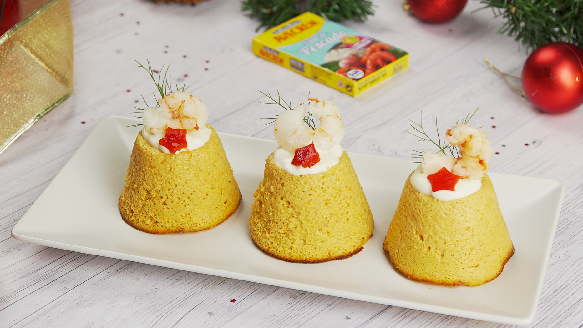 Coloca los moldes en una bandeja de horno y vierte en el fondo de esa bandeja agua. Mete la bandeja en el horno y cocina al baño maría a 180º durante 45 minutos. Pasado ese tiempo, deja enfriar. Desmolda el puding de merluza y sírvelo en un plato. Decora con tiras de pimiento de piquillo, aceitunas, eneldo y mayonesa a tu gusto.