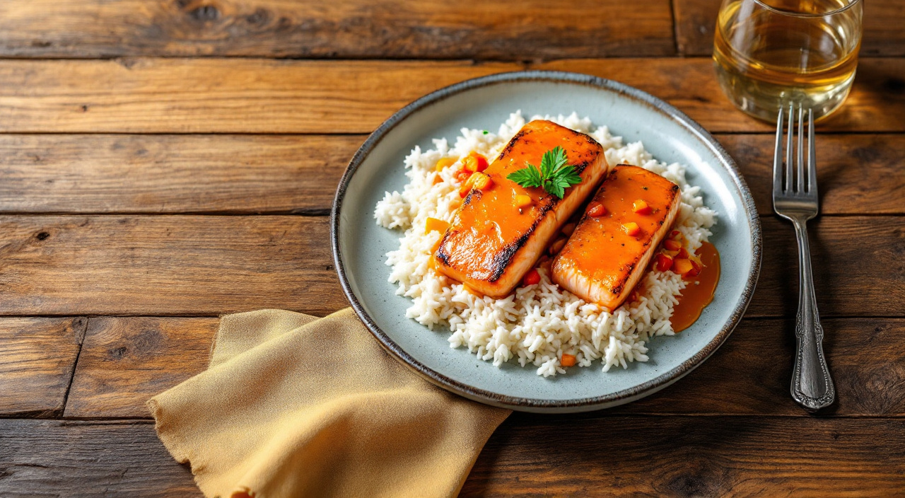 Se retira el salmón y se pasa la salsa por la batidora y se vierte por encima.