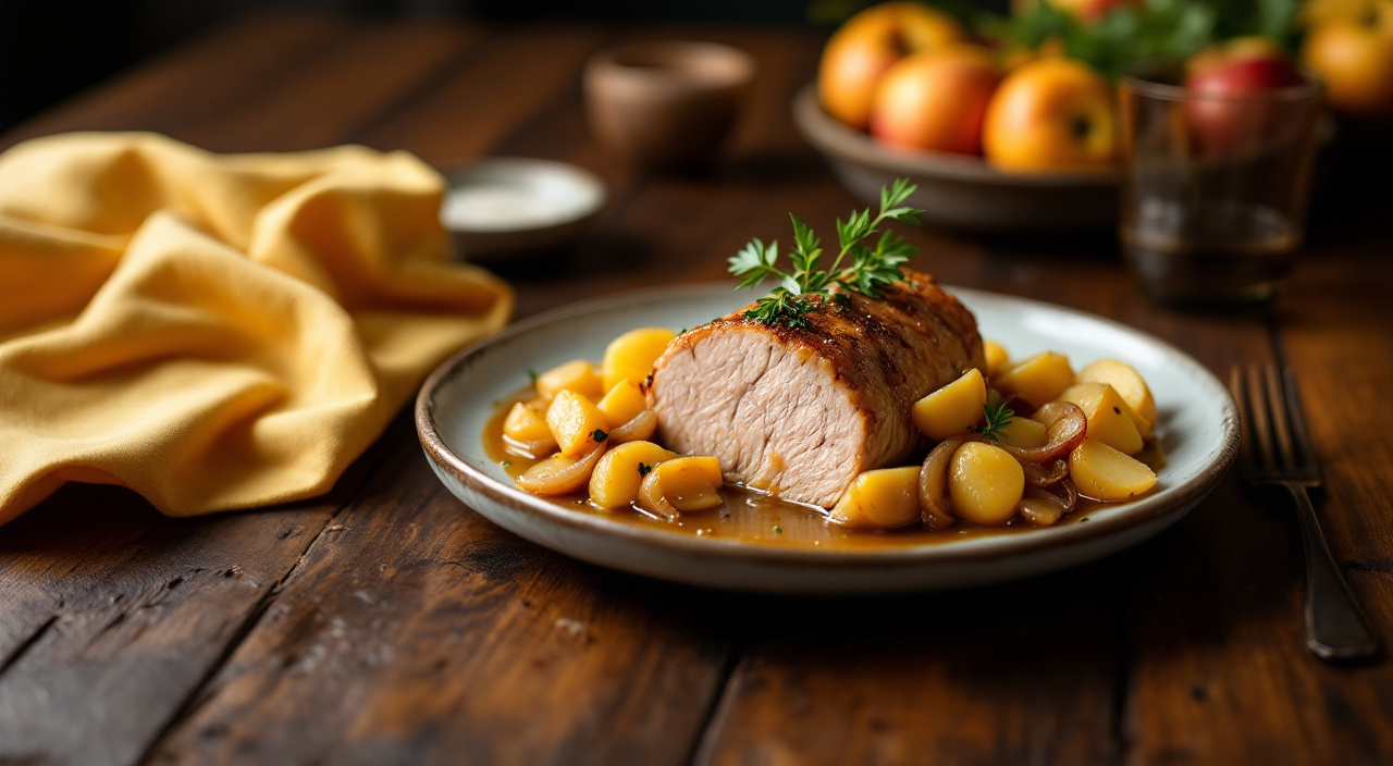 Solomillo con salsa de manzana y mostaza