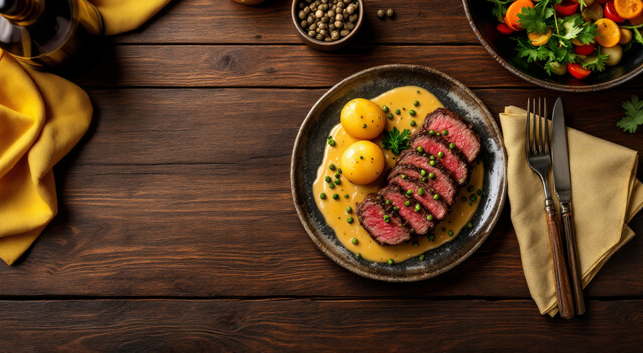 Colamos la salsa y acompañamos el solomillo con unas patatas cocidas y luego salteadas en la satén, y también las verduras.