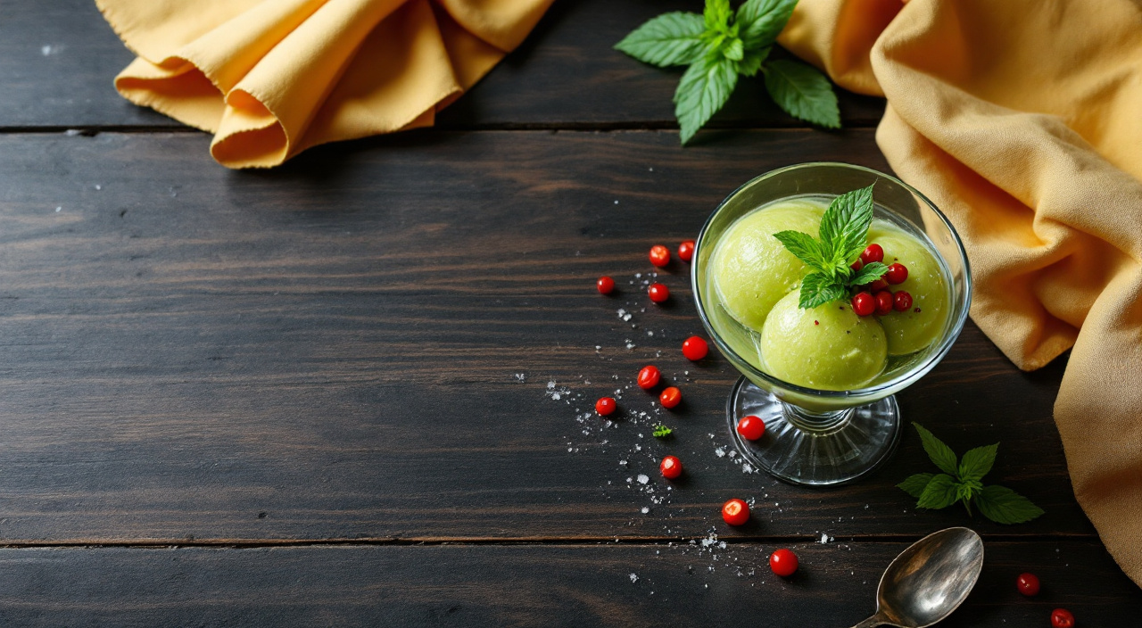 hacer bolitas cuando han pasado las 24 horas y sacalas con un sacabolas grande y servir en copas individuales , adornar con menta fresca y espolvorear con unas bayas de goji